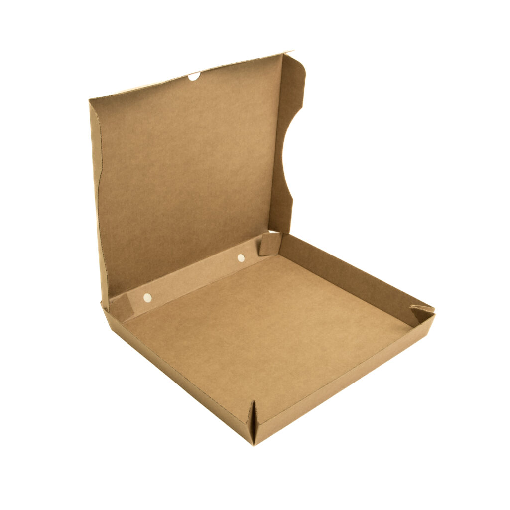 Caja tipo pizza fabricada en cartón corrugado flauta E o B.